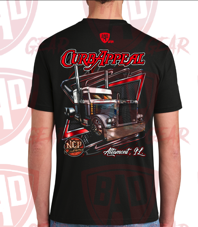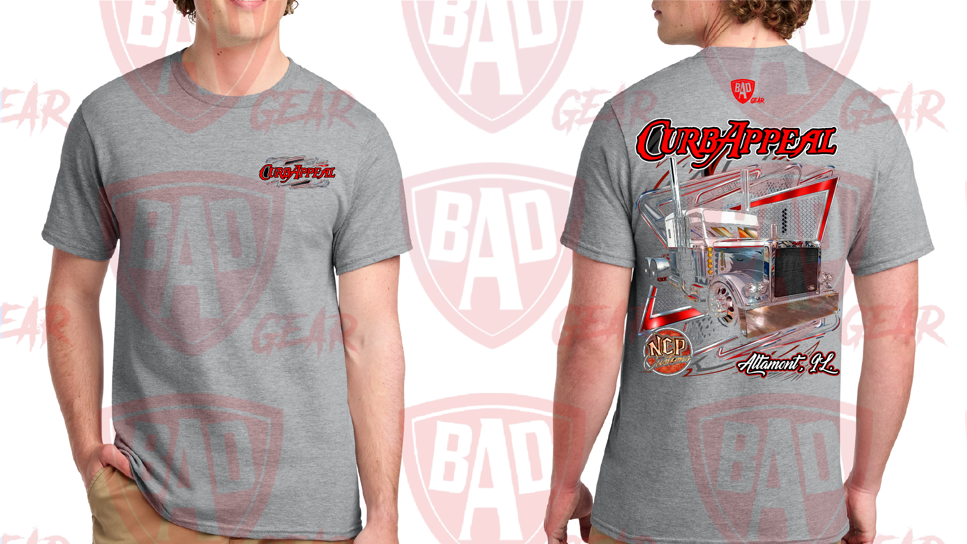 Turn heads wherever you go with this Peterbilt “Curb Appeal” truck tee. Screen printed in vibrant colors on both grey and black tees.